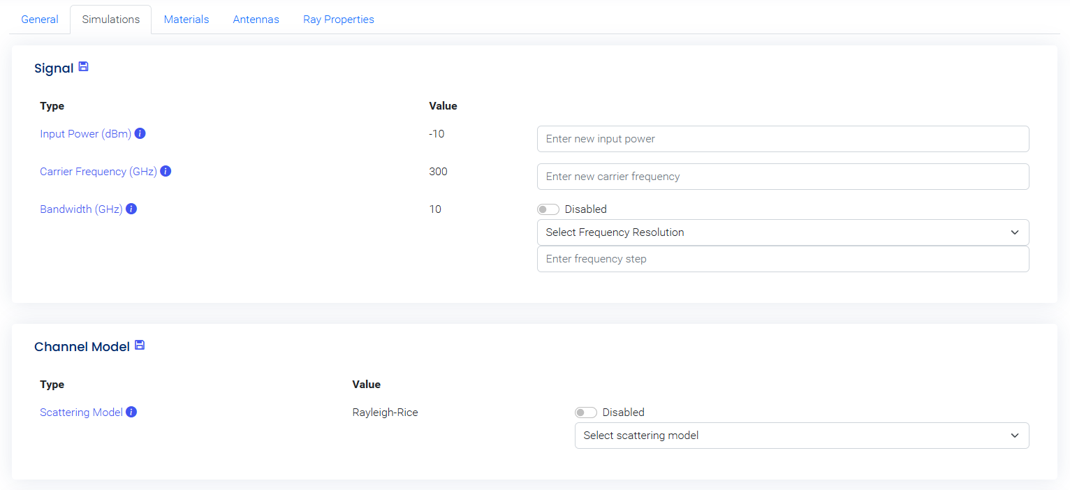 • Adjustable parameters for transmitter frequency, input power, antenna types, and material properties in the propagation environment.